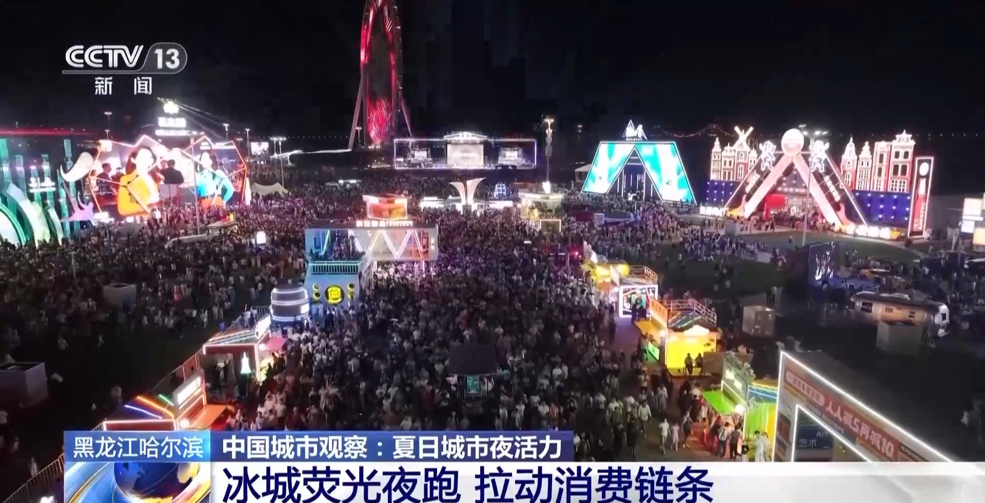 冰城夏夜,星空为幕。在哈尔滨松花江畔,近千名跑者手持荧光棒,流动的光点亮了当地地标太阳岛。完成5.2公里的征程后,跑友们可搭乘免费车辆前往冰雪大世界夏夜嘉年华,体验那里的“火热”。夜跑带来的人流,拉动形成了“夜跑—游园—餐饮”的链条,也将运动热情持续转化为消费热情。