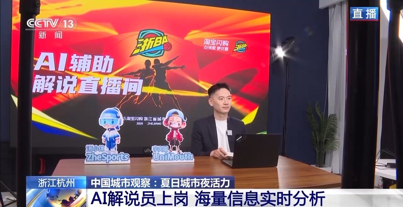 除了球员的精彩表现,科技元素也成为亮点。两位AI解说员“浙小体”和“宇大嘴”,基于AI和大数据技术,能实时分析比赛数据、预测胜负概率,同时还能补充现场解说的信息。