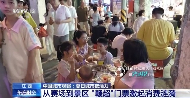 目前,“赣超”相关的拉动效应超2592万元,一张小小的球票产生的不仅是经济效益,更重构着城市夜间经济活力。