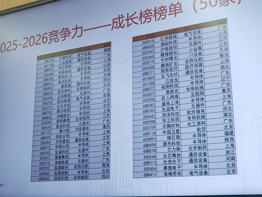 “基于公益属性,百强榜通过客观、独立的竞争力评价,为投资者提供‘最具竞争力百强企业’清单。”夏立军表示,榜单利用大量财务与宏观数据,对上市公司进行“成长性”与“稳健性”的双维度筛选,引导理性投资、提升资本市场的价值投资氛围。这一方面是基于学术严谨的数据分析,提升市场信息的透明度,另一方面也是通过榜单公开发布,强化资本市场对优质企业的识别与支持,助力资本更好地服务实体经济,实现创新与价值的双向提升。