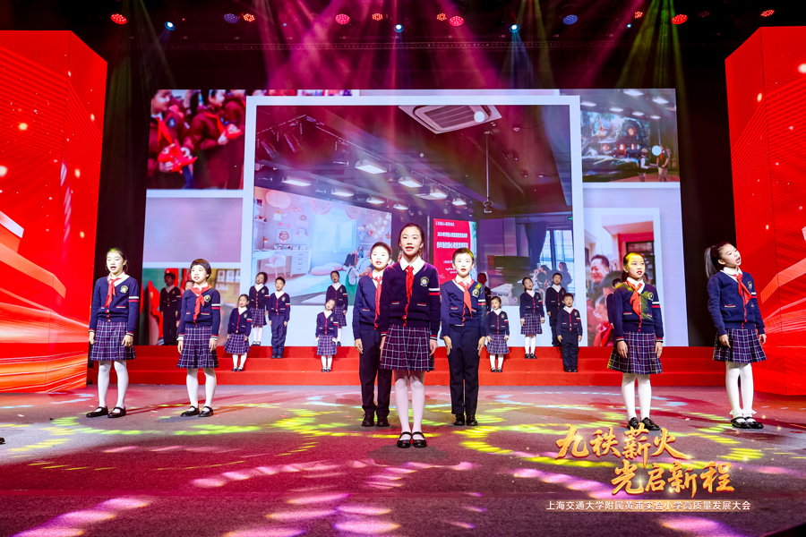 师生们自编自演的校庆剧《我们走过的路》取材于学校真实历史,通过四个篇章讲述了一个跨越90年守护童心的故事——抗战时期,教师在艰难环境中坚持开课,守护孩童求知之光;上世纪70年代,老师以爱心和耐心组建红领巾班,呵护童真成长;改革开放后,学校积极推动教师专业发展,提升育人质量;进入新时代,学校深化“童味教育”,让每个孩子被看见、被尊重、被赋能。